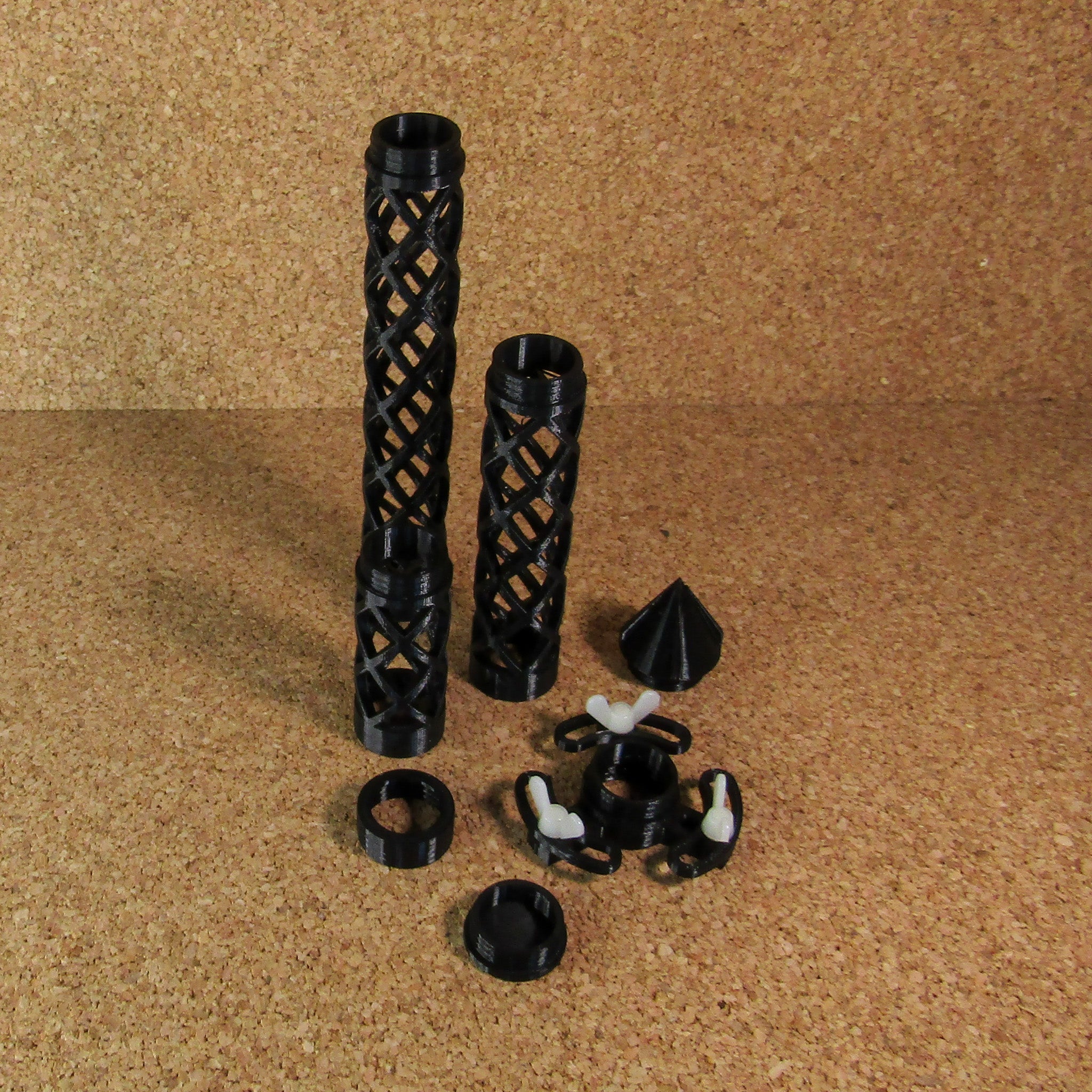 The most common set is the 'Full Set' which includes 3 poles, 75mm, 125mm and 175mm length - Small (25mm diameter) and poles 190mm length - Medium (50mm diameter). These both inlcude a soil spike, flat base, plant pot brace and hollow cap. This allows greatest flexibility in setup for each situation.